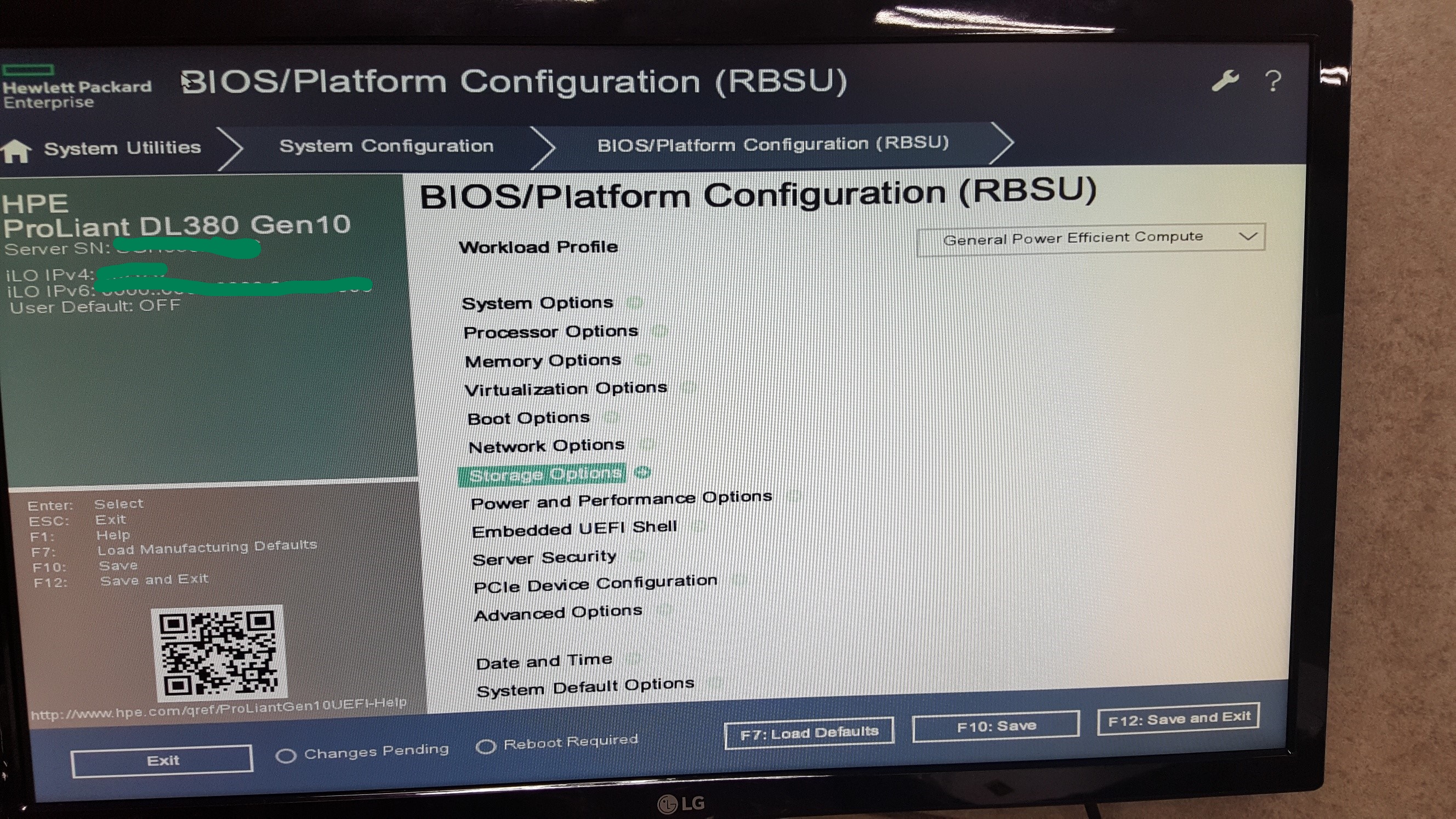 4. BIOS/Platform Configuration (RBSU) 버튼 클릭