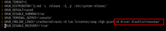 위와같이 6번째 라인끝에 rd.driver.blacklist=nouveau 추가 후 저장