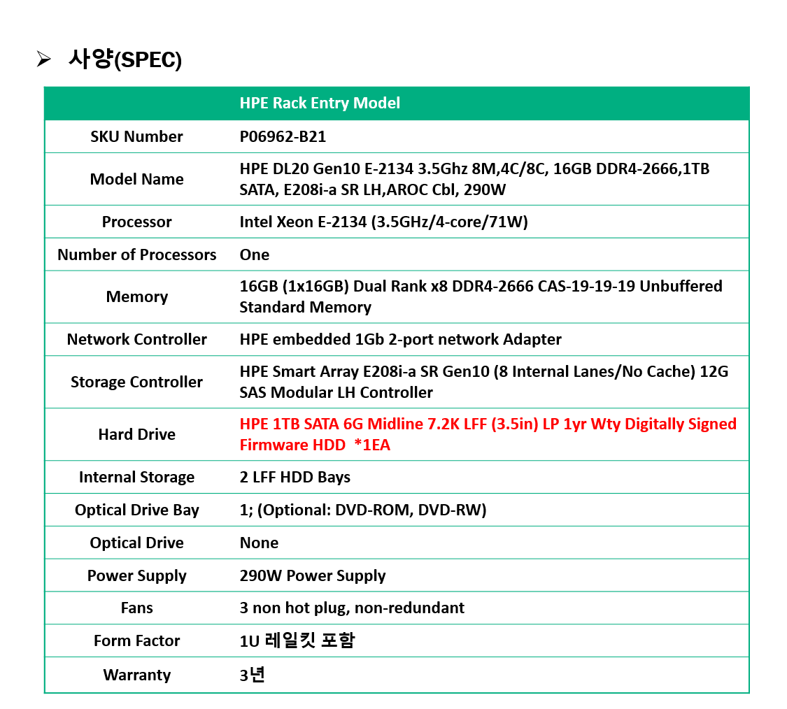 | [HPE서버] HPE HP ProLiant DL20 Gen10 Plus / 소규모기업 / IDC /스타트업기업 / 다양한 워크로드를 지원하는 경제적인 가격의 다목적 1U 소형 서버 (0) | 2022.05.17 |