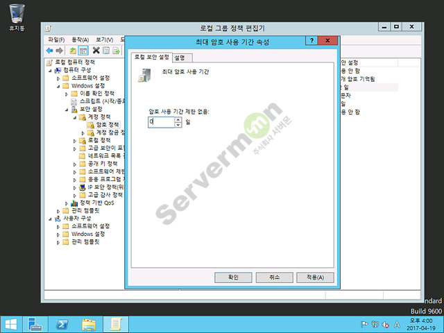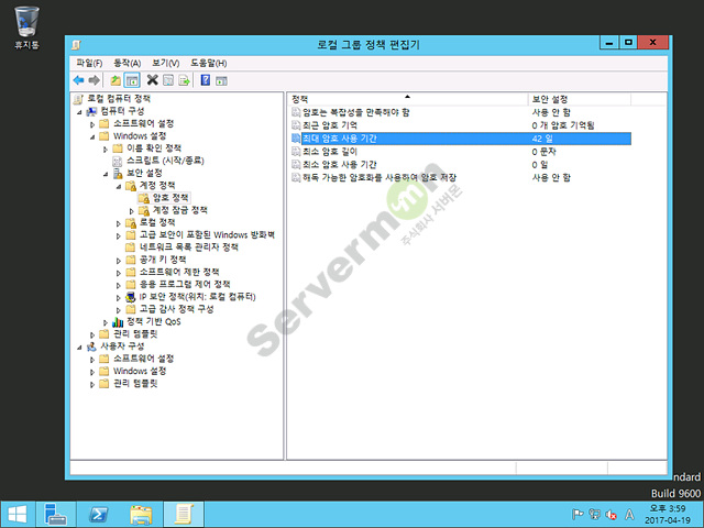 윈도우 서버 암호 사용 기간 제한 없음 으로 설정하는 방법 입니다.