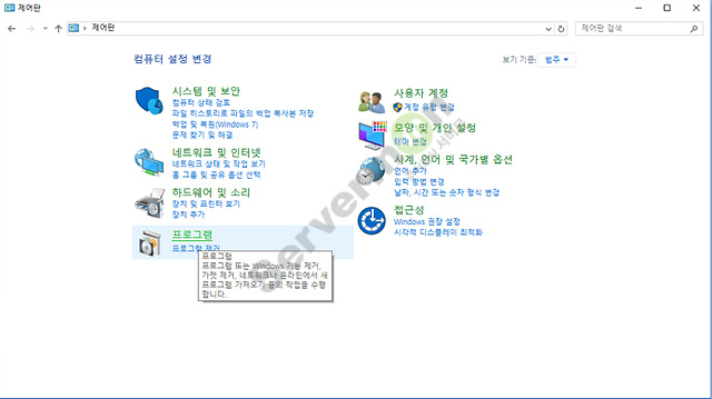 예전의 모습 제어판에서 "프로그램" 버튼을 눌러 줍니다.