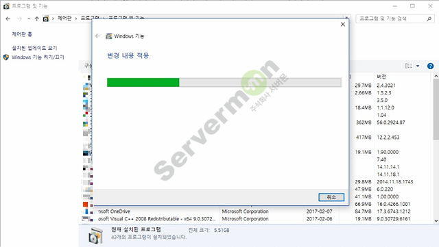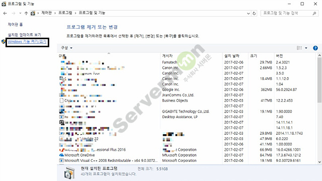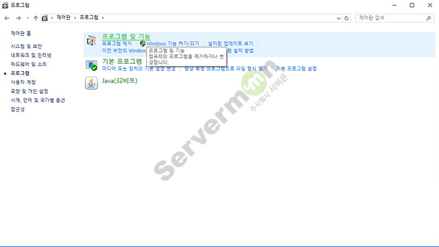 왼쪽에 보면 Windows 기능 켜기/끄기 가 있습니다.