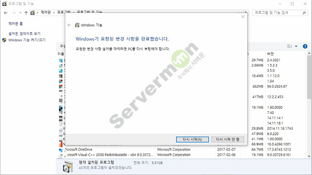 지금까지 가상 OS 를 돌릴 수 있는 Hyper-v 설치 진행과정 이었습니다.