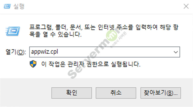 " appwiz.cpl " 를 입력 후 엔터 를 하면