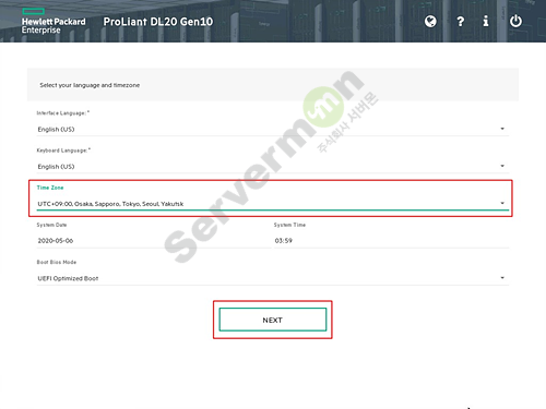 6. “Time Zone” 아래 사진과 같이 변경 후 “NEXT” 버튼 클릭으로 다음으로 넘어간다.
