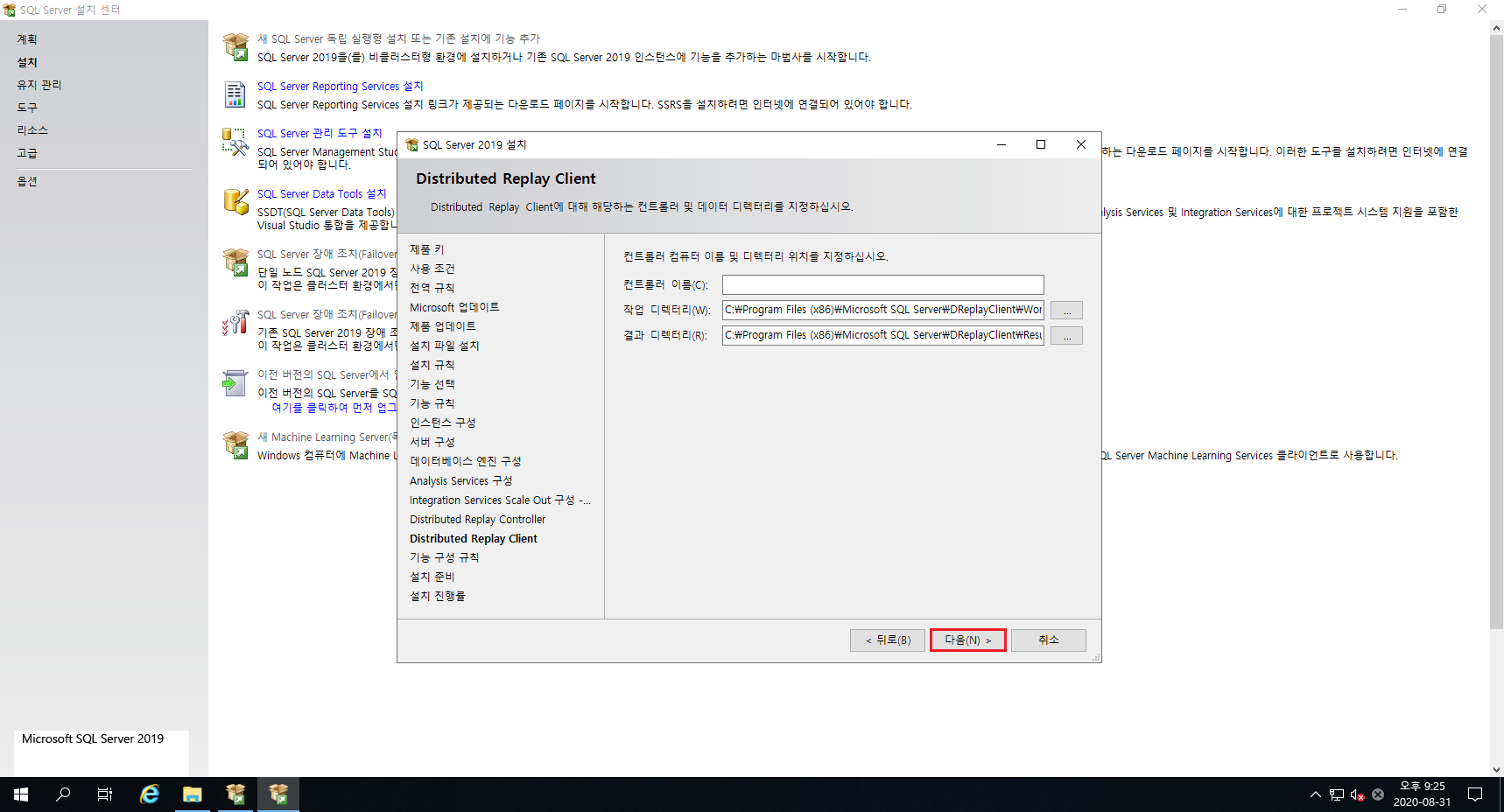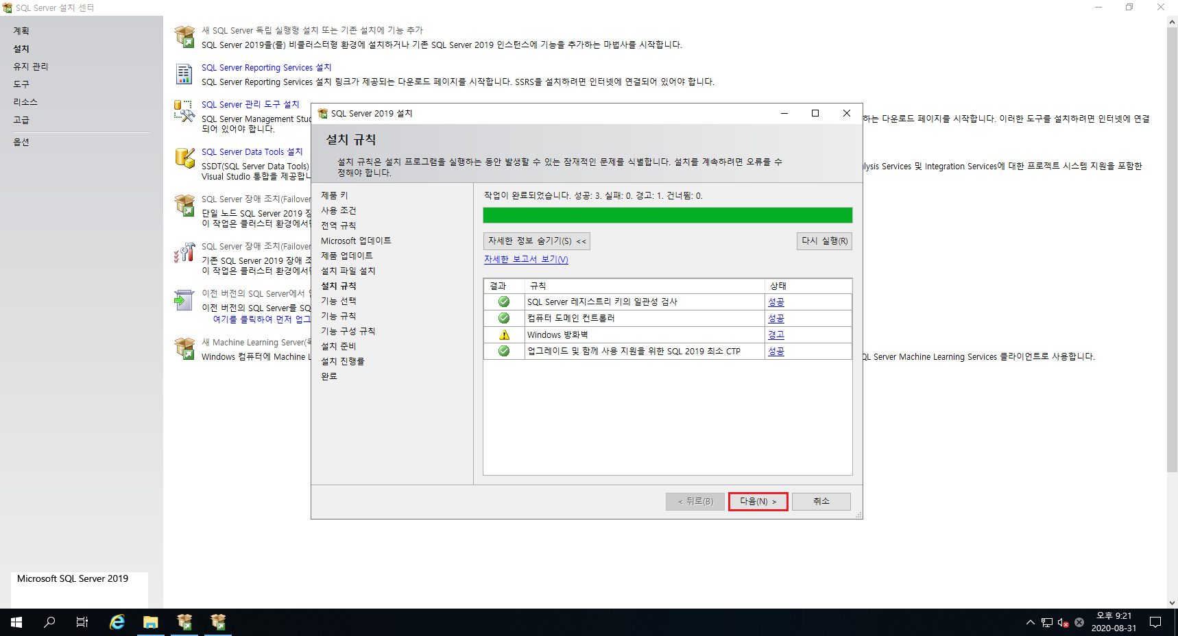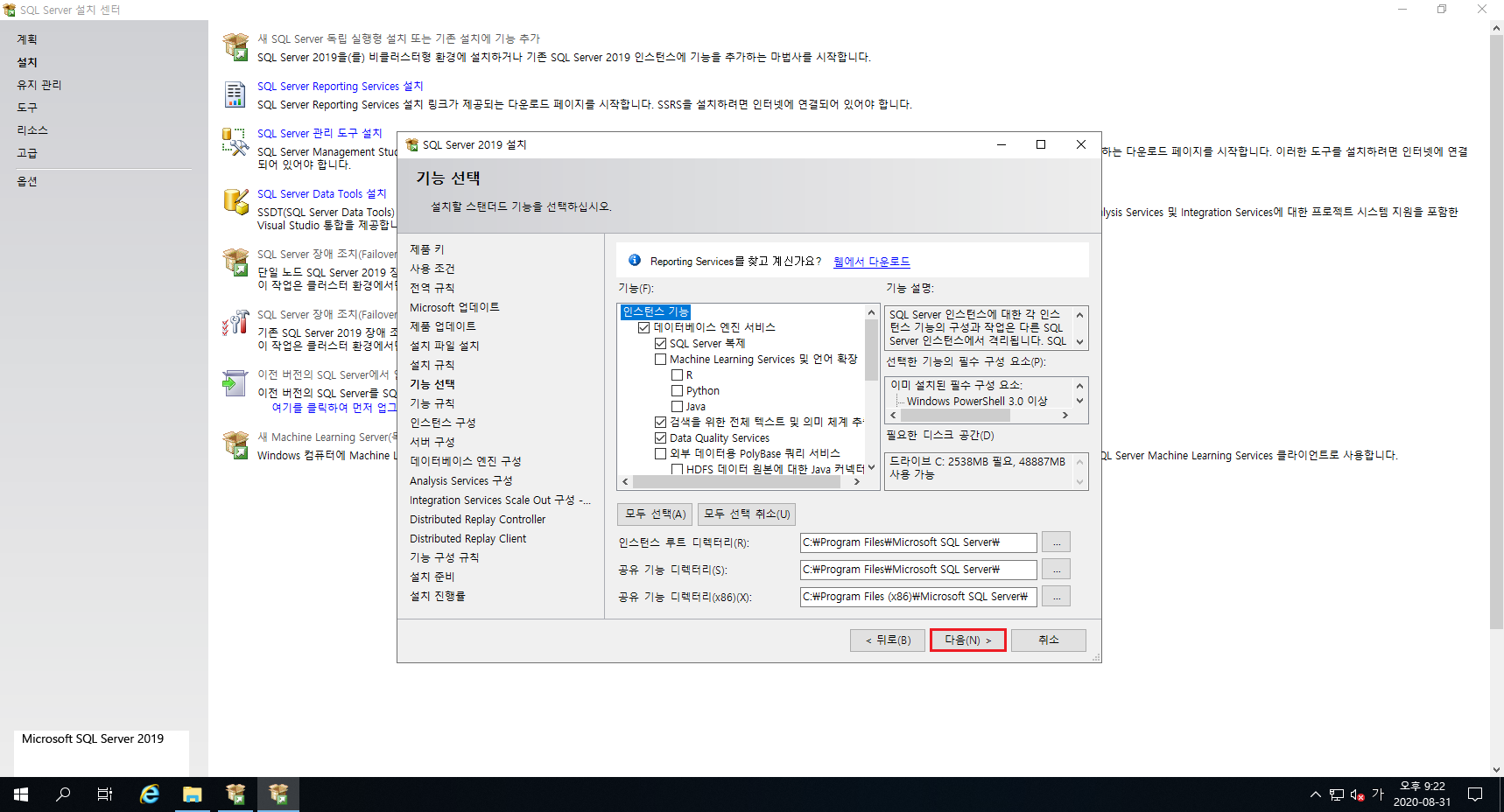 필요한 기능들을 설치했으면 [다음]을 클릭합니다.
