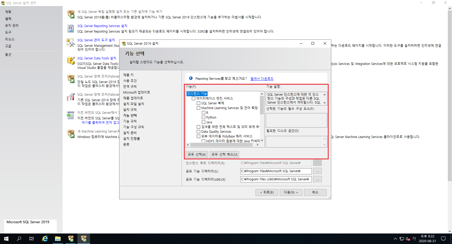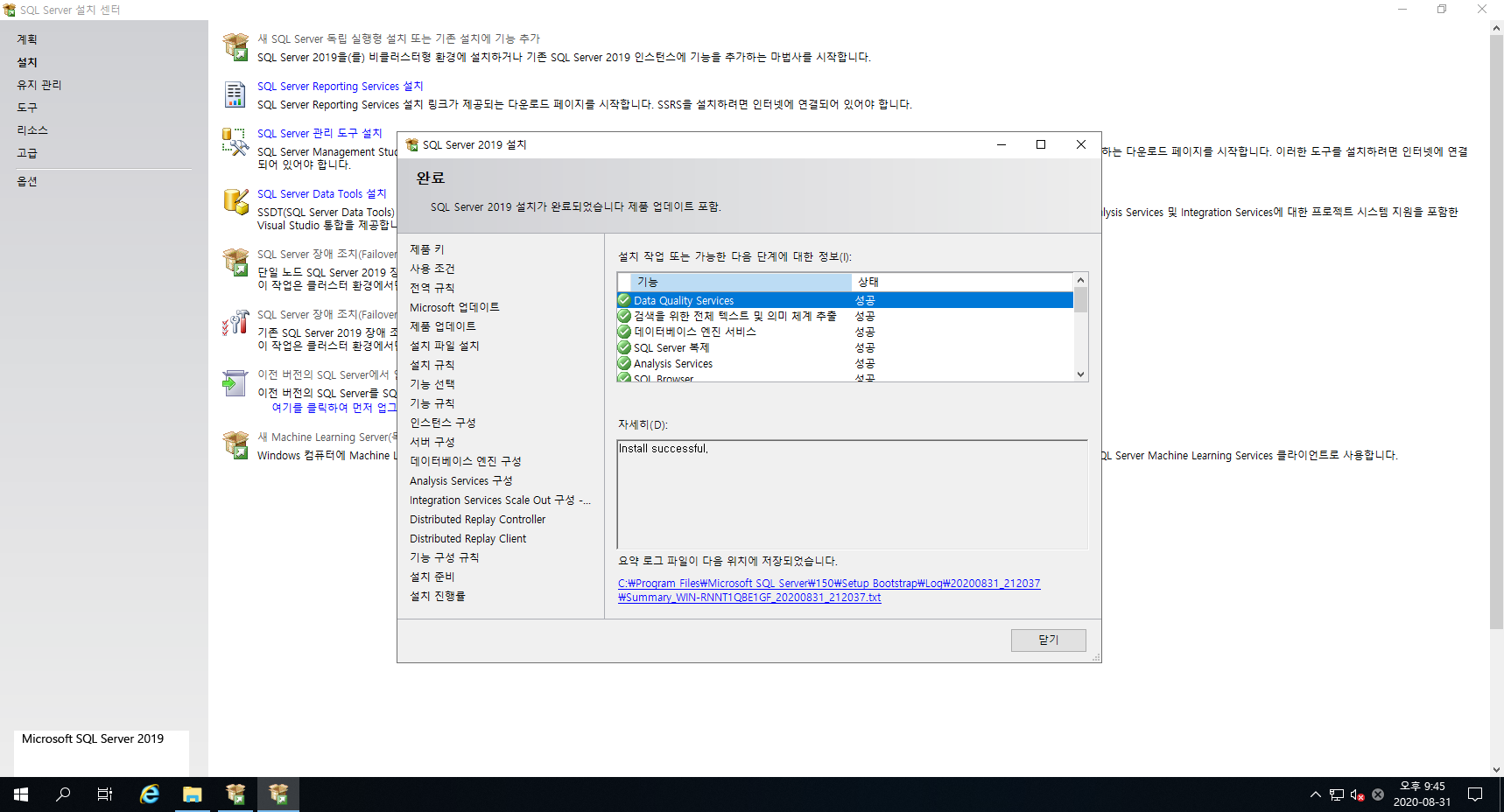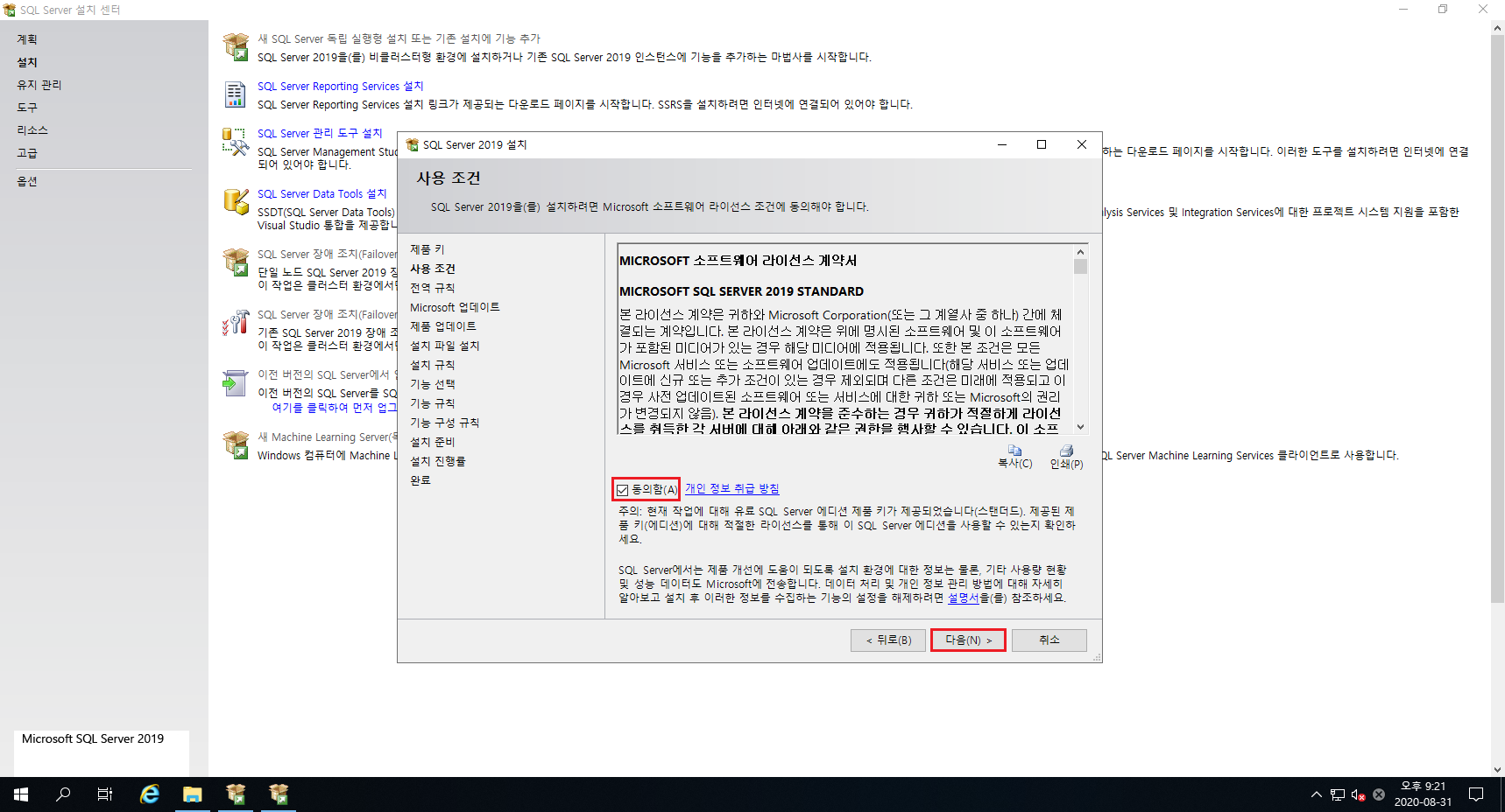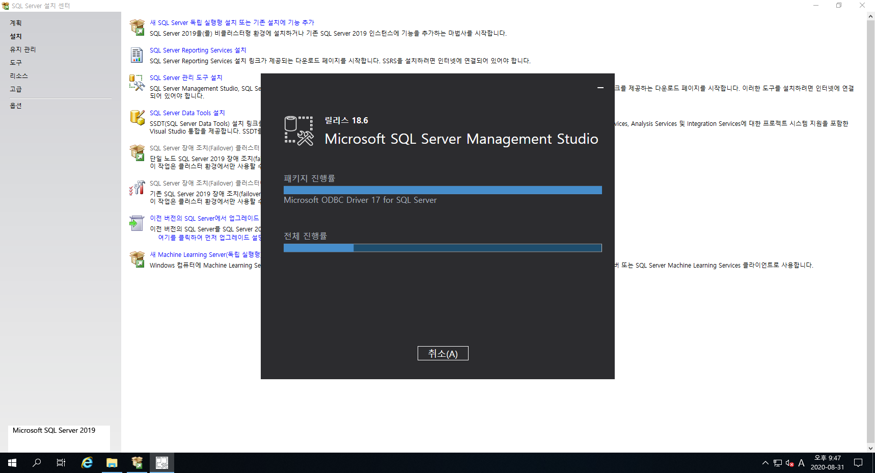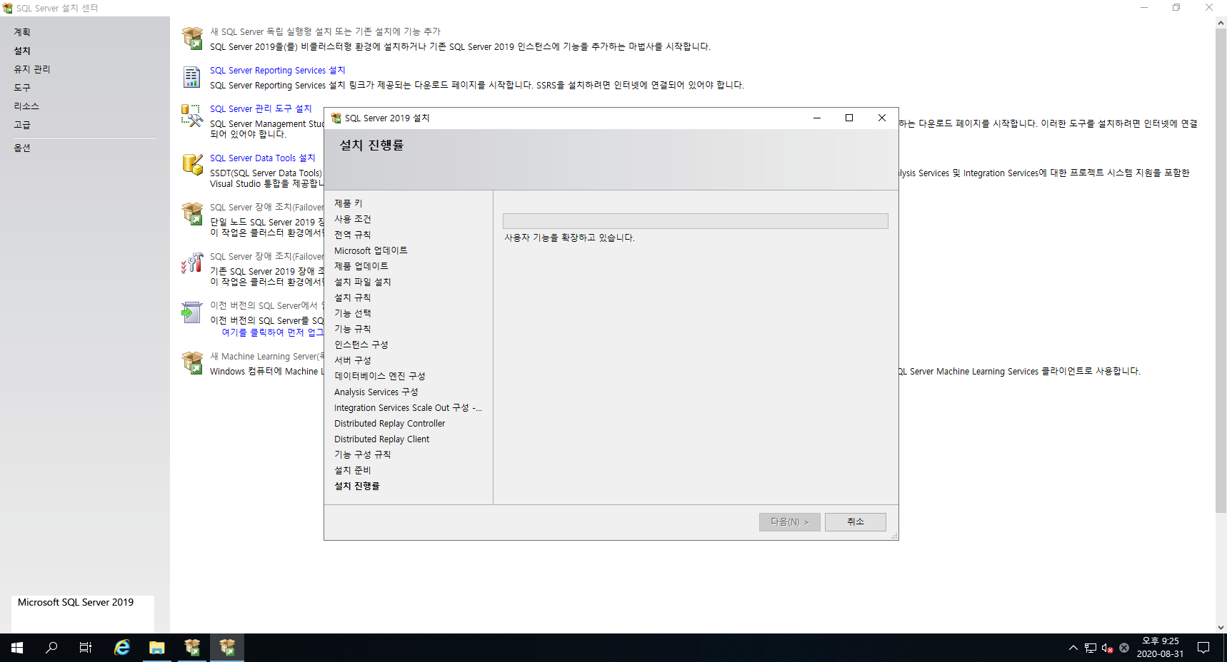 MS-SQL 2019를 실행하여 좌측 상단의 [설치]를 클릭합니다.