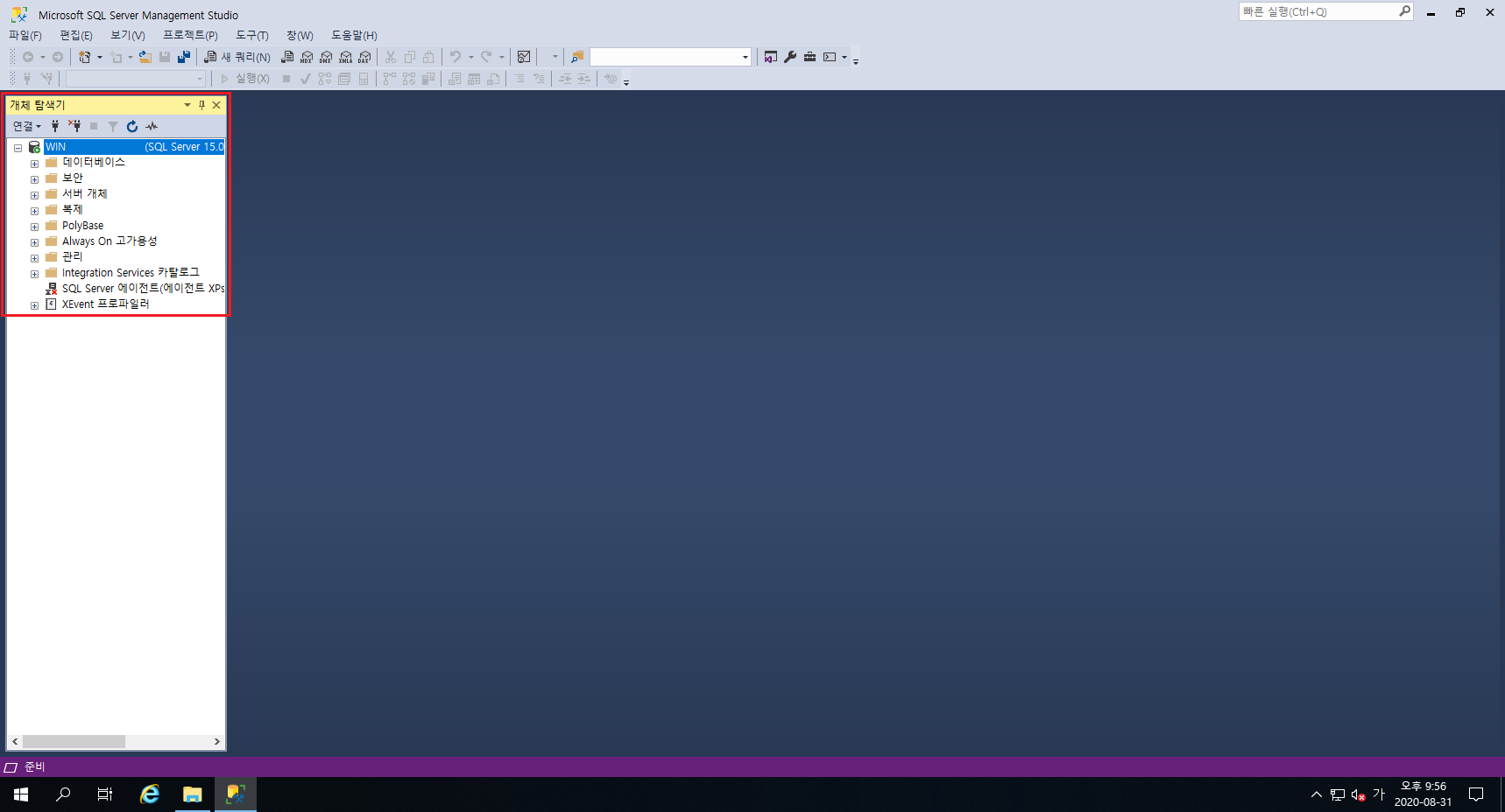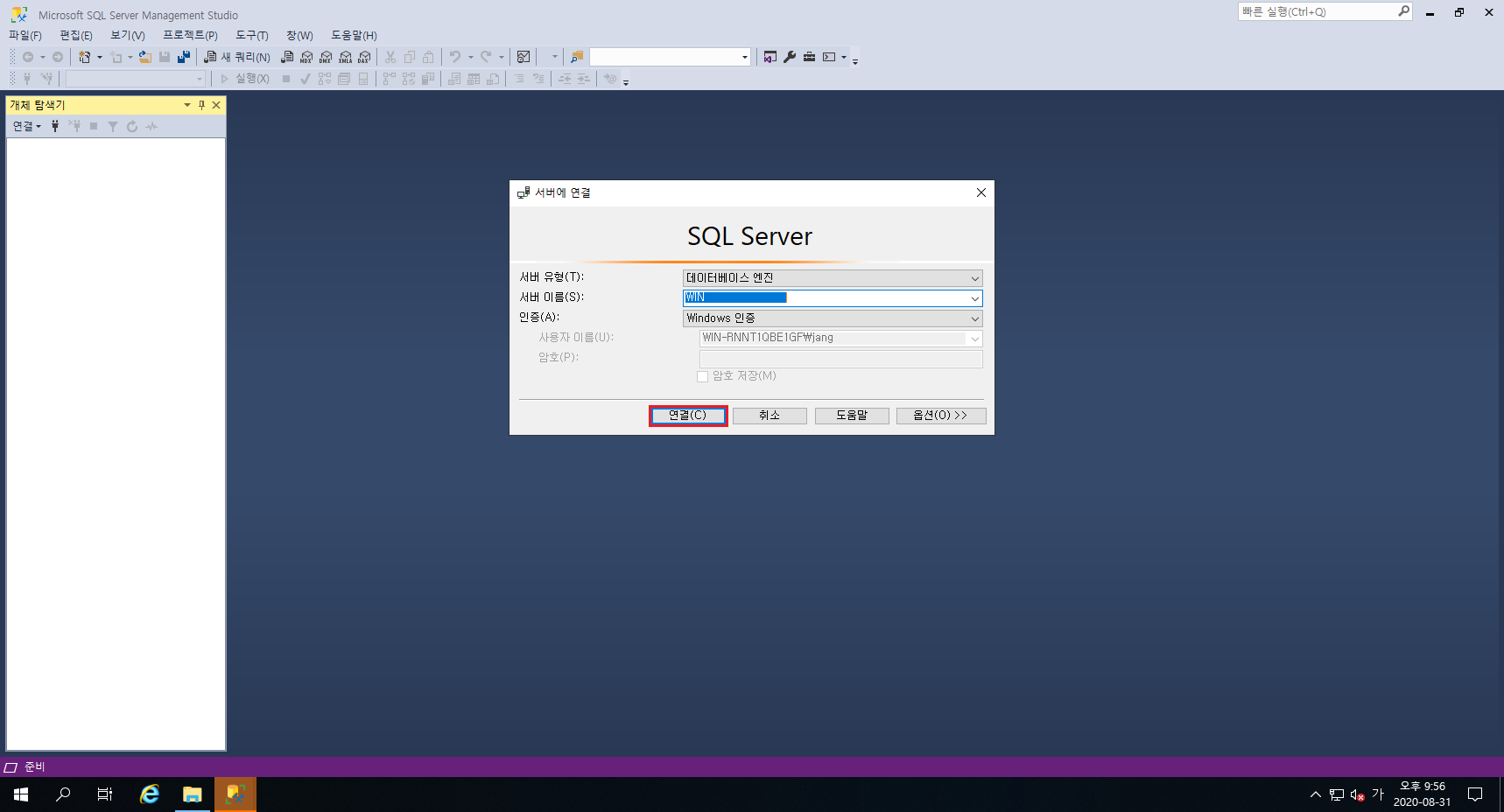 SSMS를 실행하여 [연결]을 클릭합니다.