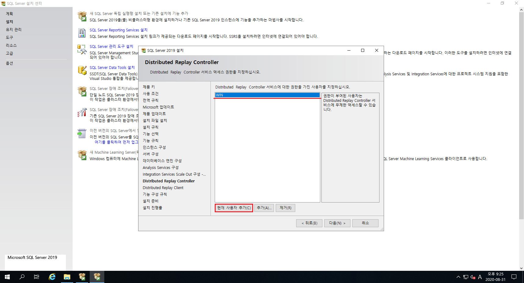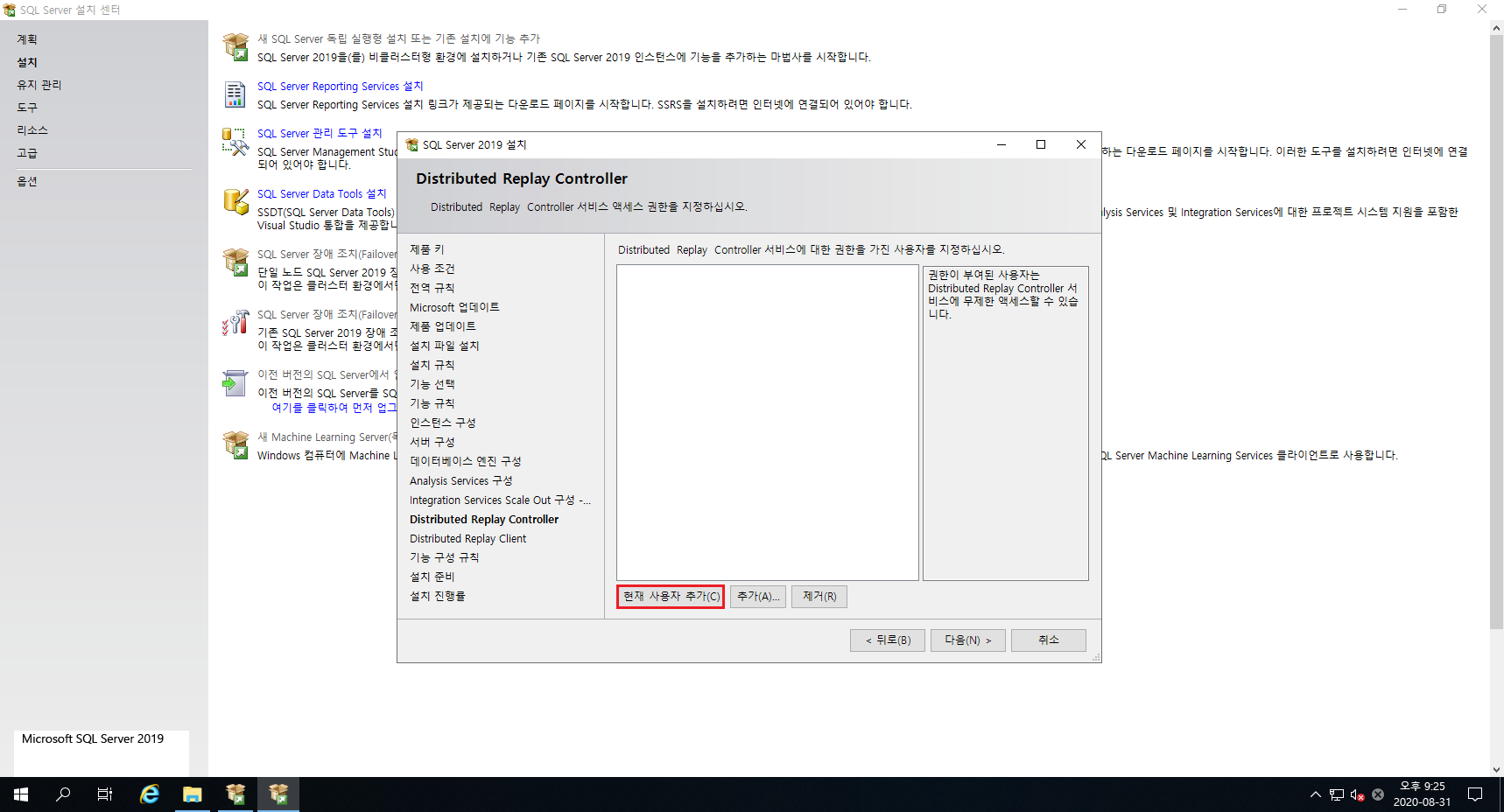 Distributed Replay Controller 단계입니다. [현재 사용자 추가]를 눌러 사용자를 추가합니다.