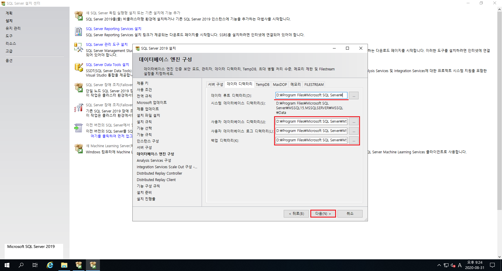 제일 위의 데이터 루트 디렉터리를 변경하면 아래의 경로들도 따라 바뀌게 됩니다. 설정 완료 후 [다음]을 클릭합니다.