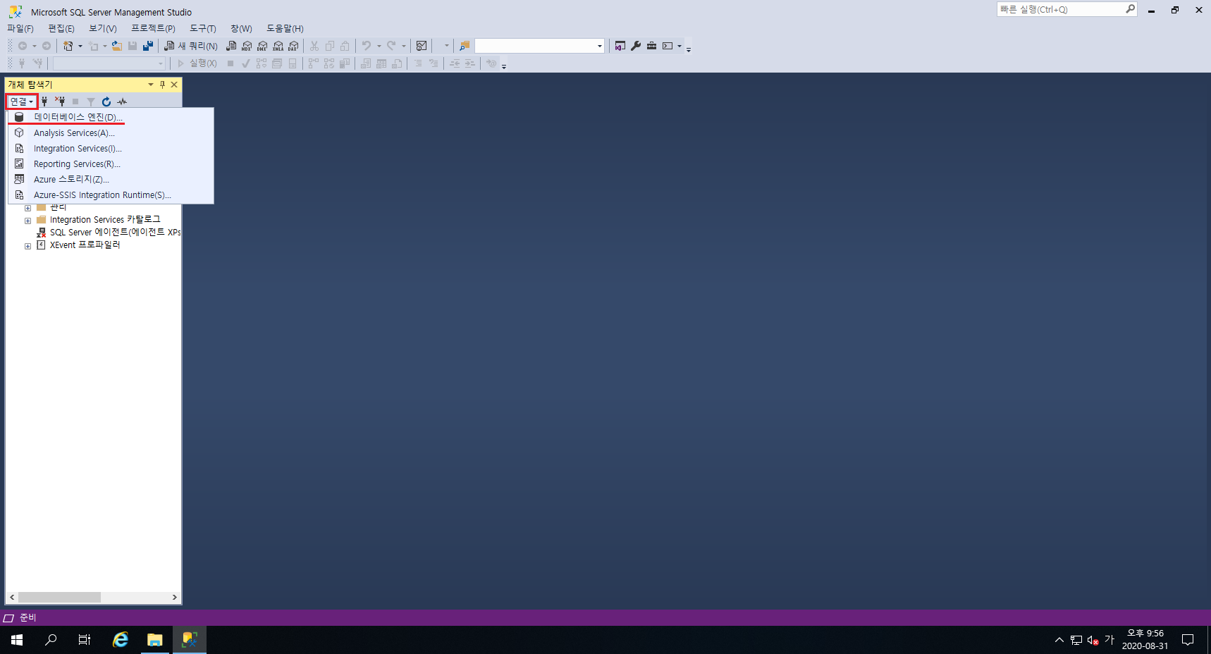 SSMS를 실행하여 [연결]을 클릭합니다.