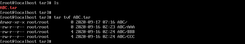 -t : tar 아카이브에 포함된 내용 확인