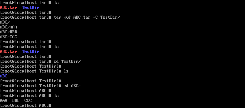 3-5. tar 아카이브를 지정된 디렉터리에 풀기