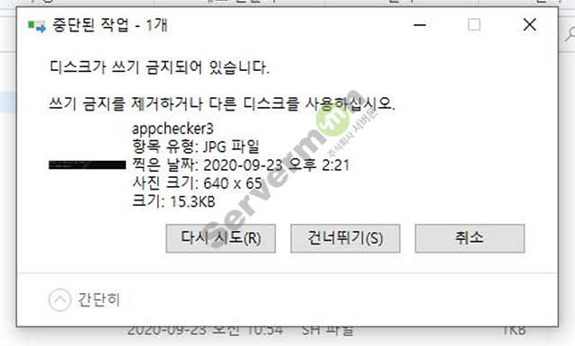 * 디스크 쓰기 금지(읽기 전용) 확인하기