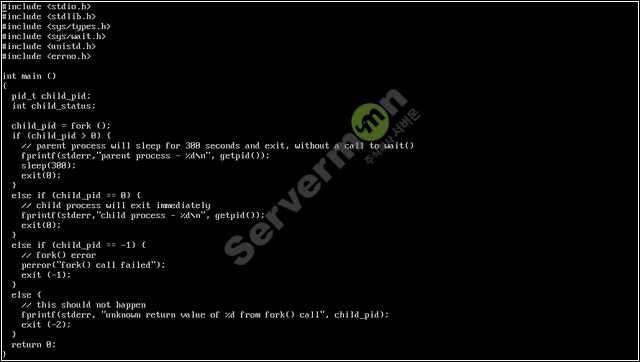 - 아래의 방법으로 가상의 좀비 프로세스를 만들어 아래의 예제를 작성했습니다.