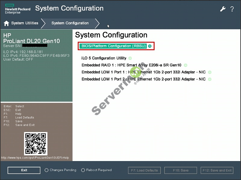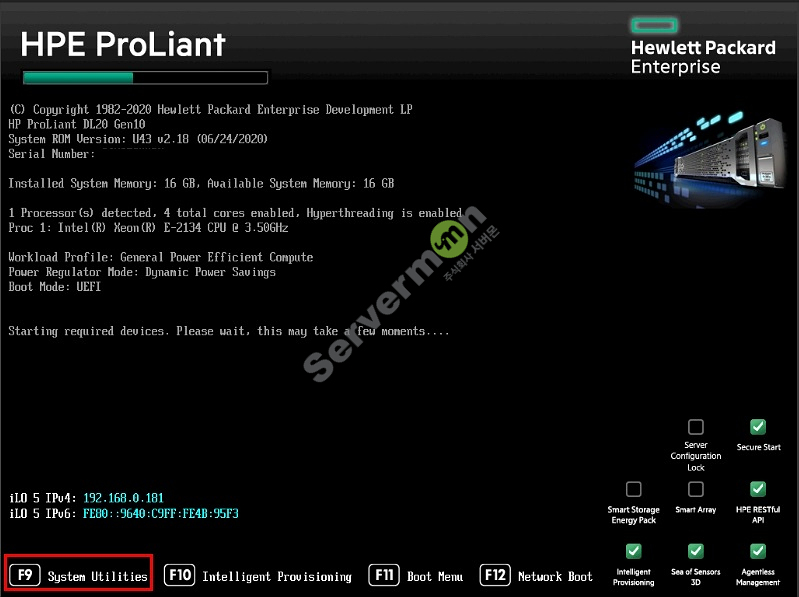 서버를 시작 후 F10 Intelligent Provisioning 메뉴가 보이지 않을때 BIOS에서 변경하는 방법입니다.
