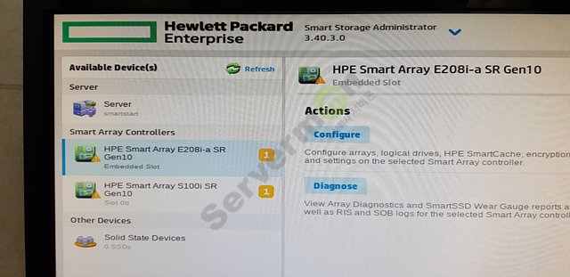 11. 재부팅 후 Smart Storage Administrator에 진입 후 확인 시 하기의 사진과 같이 추가 된 E208i RAID 컨트롤러를 확인 할 수 있습니다.