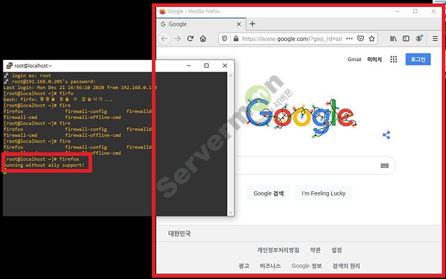 서버에 기본적으로 설치된 Firefox 브라우저 실행 합니다.