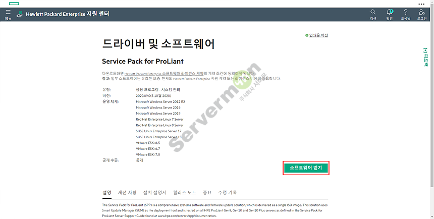 service pack for proliant의 => Gen9, Gen10, Gen10 Plus에 적용가능)