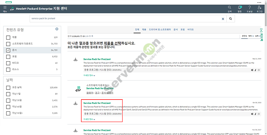 1. https://support.hpe.com/ 접속 후 SPP 또는 service pack for proliant로 검색