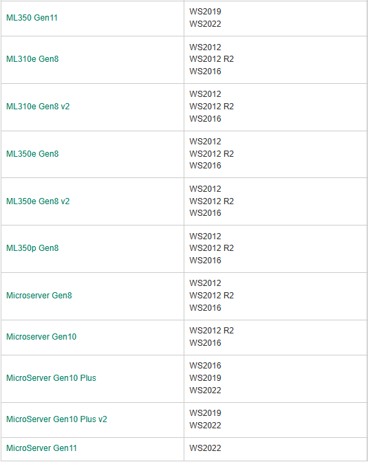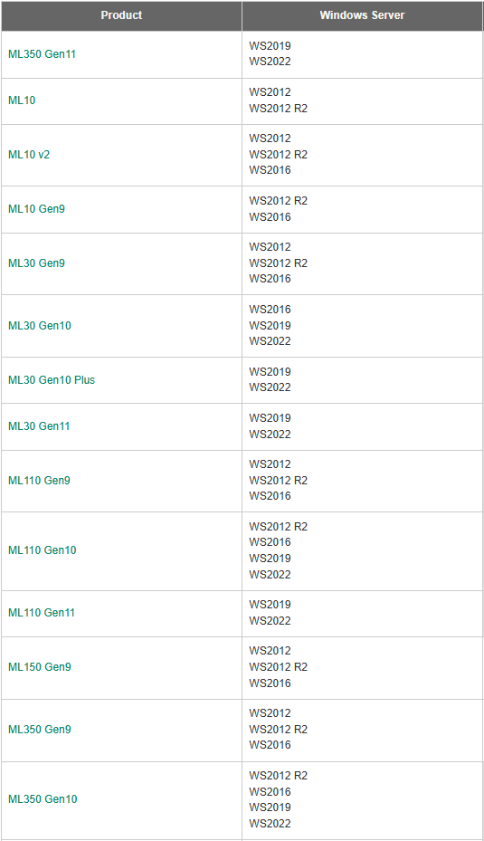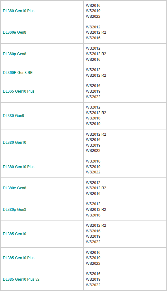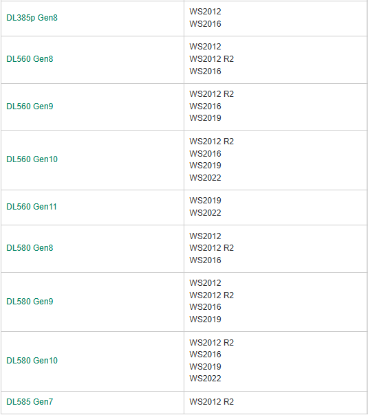 HPE Servers Support & OS Certification Matrices Windows Server Support and Certification Matrix --> Welcome to the HPE Windows Server Support and Certification webpage for HPE Servers. Click on the individual product link to obtain the HPE Server QuickSpec