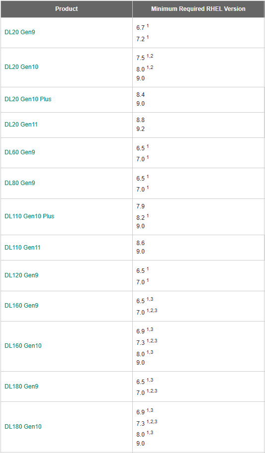 HPE Servers Support & OS Certification Matrices Red Hat Enterprise Linux Welcome to the HPE Red Hat Enterprise Linux (RHEL) Support and Certification webpage for HPE Servers... Click on the product link to obtain the HPE Server QuickSpecs. HPE recommends t