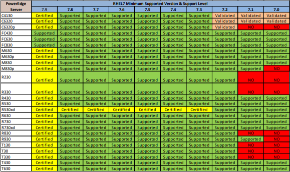 Dell EMC PowerEdge 서버용 Red Hat Enterprise Linux 인증 매트릭스