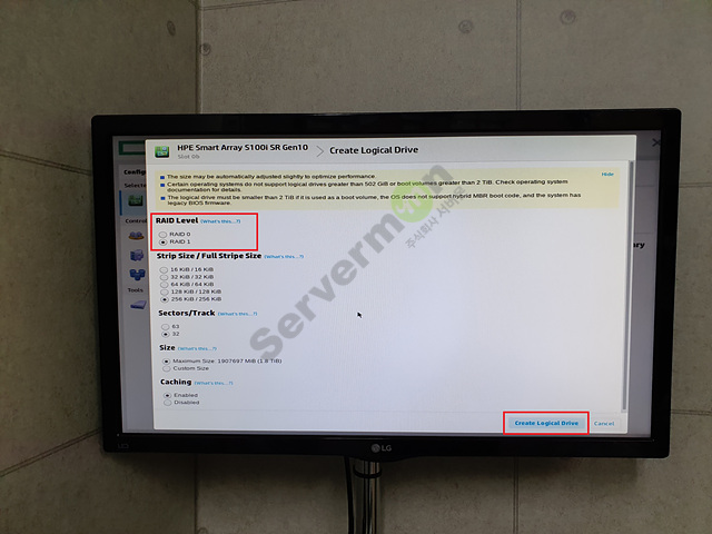 7. RAID Level만 원하는 RAID 구성으로 선택합니다. (다른건 조정할필요 없음)