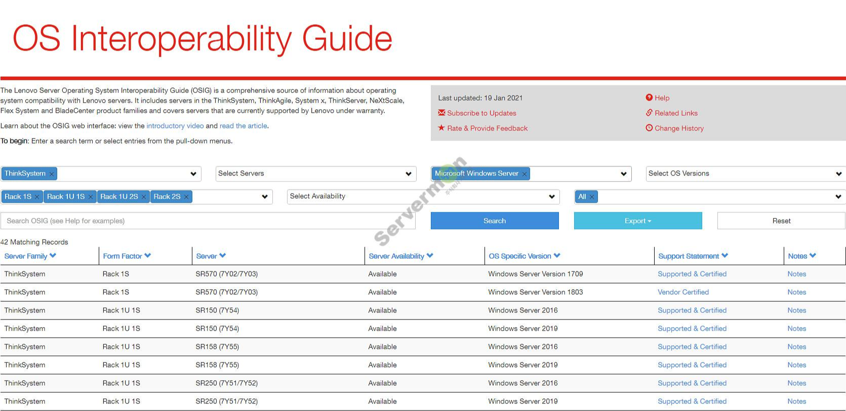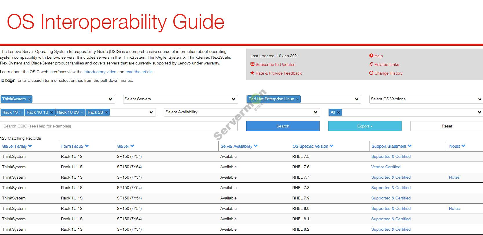 * Lenovo 서버 별 지원 가능 OS 확인 및 관련 사이트 주소 입니다.