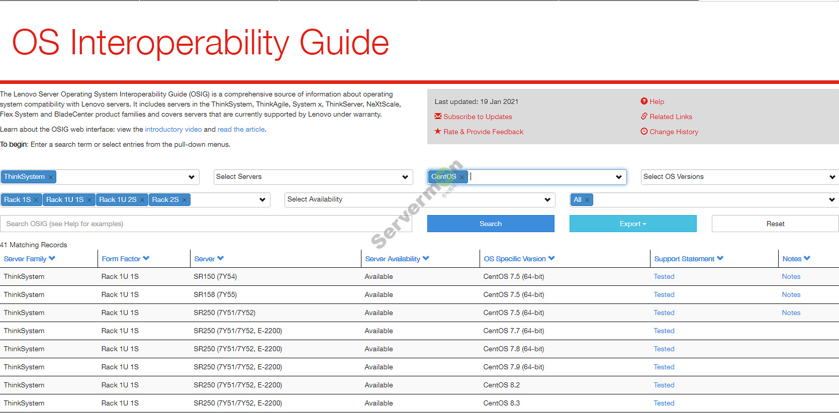 * Lenovo 서버 별 지원 가능 OS 확인 및 관련 사이트 주소 입니다.