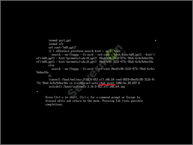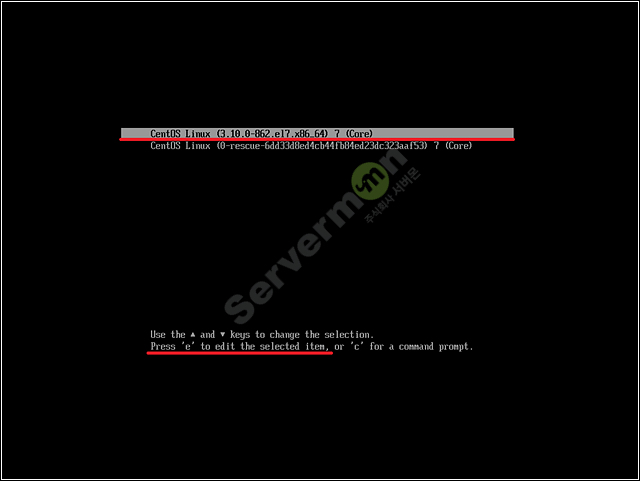 사진과 같은 화면에서 [e]키를 눌러 edit 화면으로 들어갑니다.