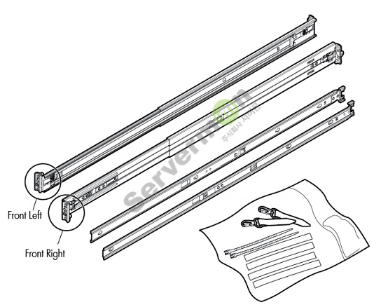 위 구성품의 서버 레일의 방향 마킹을 확인합니다.
