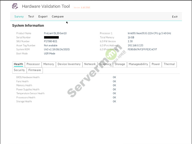 Hardware Validation Tool은 HPE 서버의 H/W에 대하여 자가 진단해주는 툴 입니다.