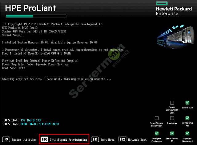 1. F10 Intelligent Provisioning 선택