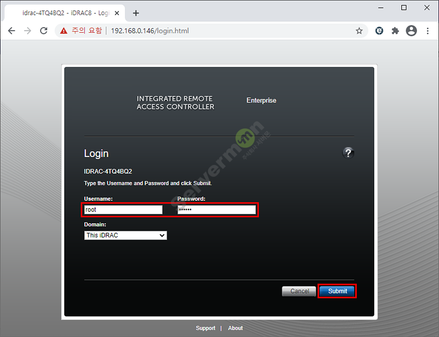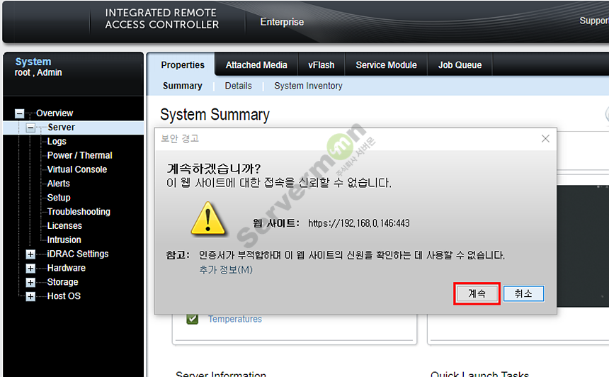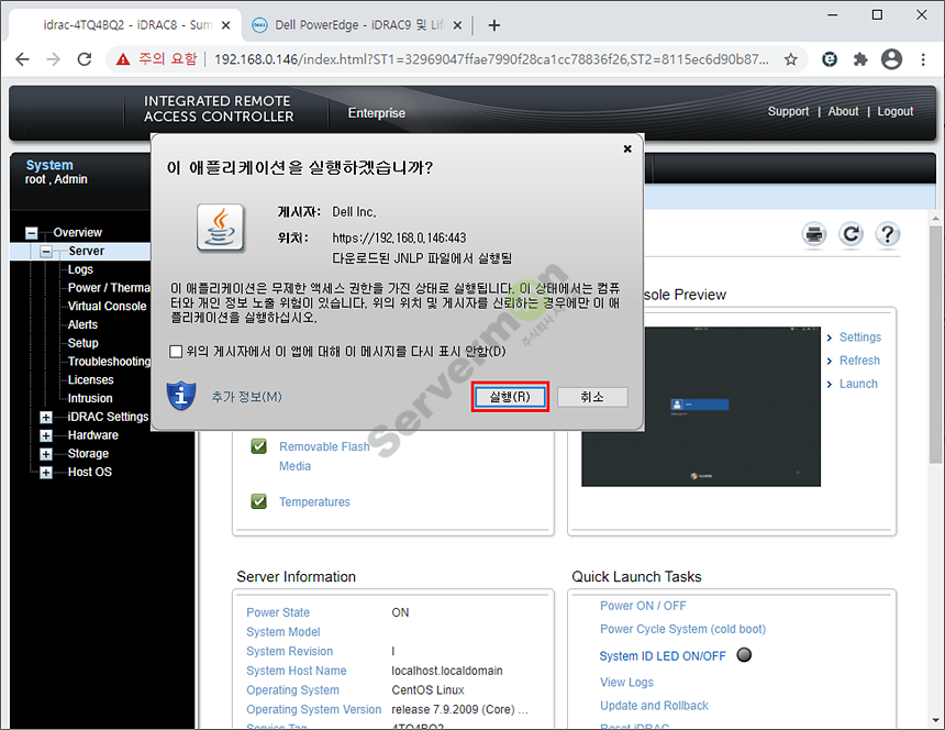 1. iDRAC 웹 페이지에 접속 합니다.