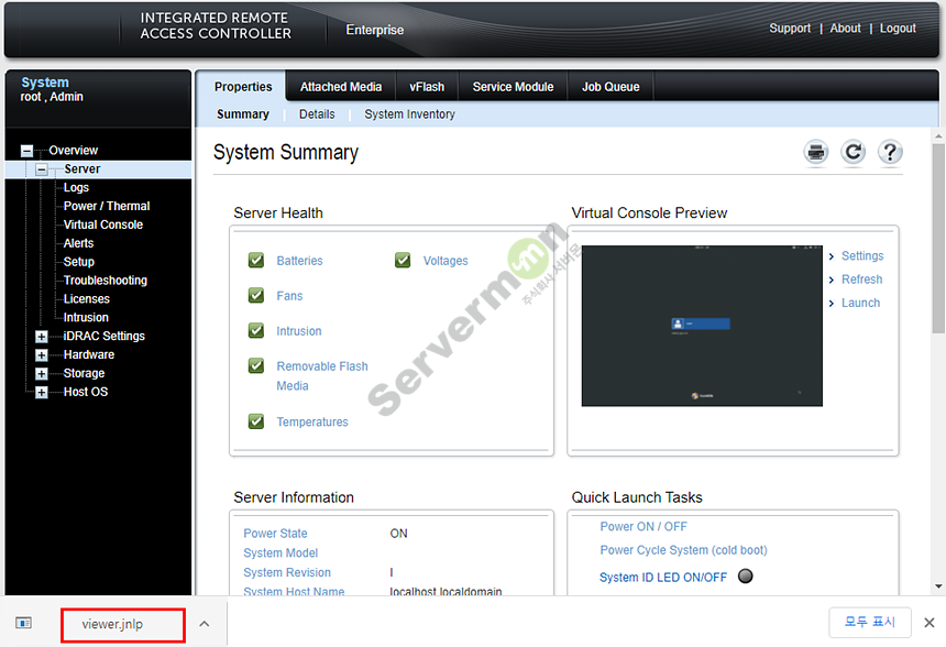 기본적으로 서버를 구매 하게 되면 Express 라이선스가 적용 되어 있으며, Express 라이선스 상태에서는 원격에서 서버를 억세스 할 수 있는 가상콘솔(Virtual Console)을 사용 할 수 없습니다.