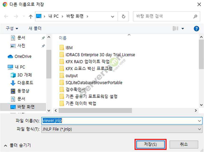 6. 파일 저장하는 탐색기 창이 뜨면 "저장"을 합니다.