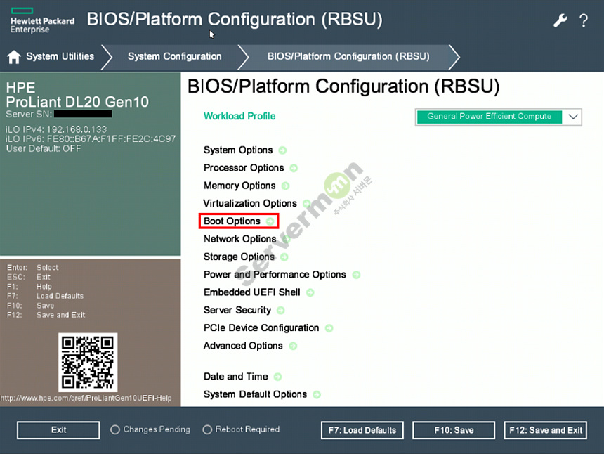 3. BIOS/Platform Configureation(RBSU) 선택