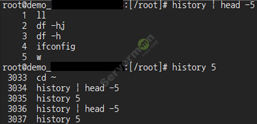 *head -5 명령어는 저장된 history 명령어 중 제일 처음에 사용한 기록이 출력 됩니다.