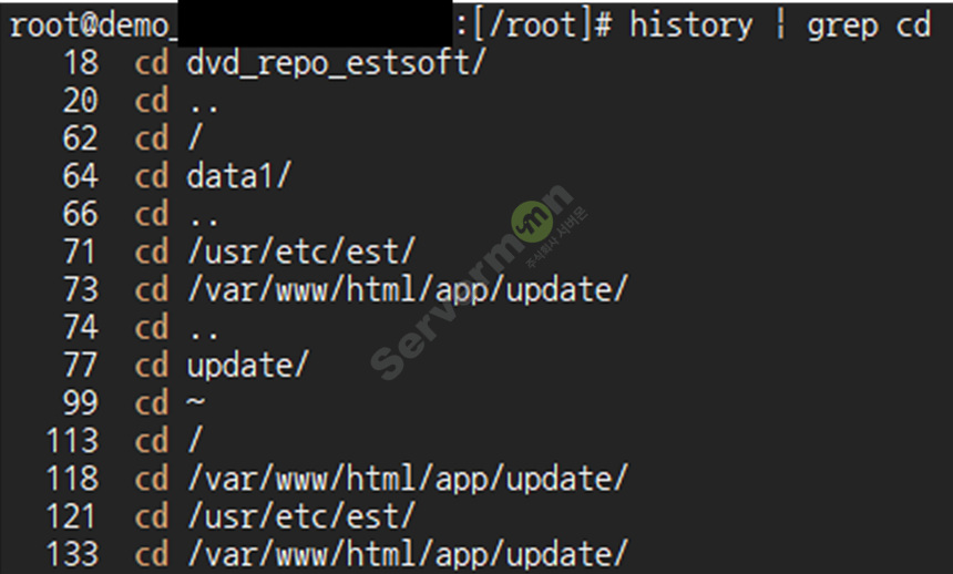 grep 명령어와 조합하면 사용한 명령어 중 특정 명령어가 포함된 history 기록을 조회할 수 있습니다.\