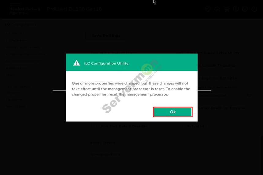 8. 주의!!! Reset Options -> Reset iLO 를 꼭 실행 해 줘야 정상적으로 적용이 됩니다.
