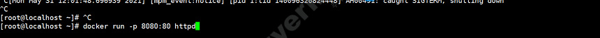 docker run -p 8080:80 httpd 이미지의 -p 옵션을 통해 외부 8080포트, 내부 80포트의 httpd 컨테이너를 생성