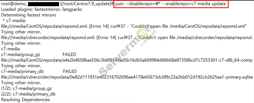 그리고 CentOS-Media.repo 내용에 나와있듯이 명령어로 업데이트 진행 합니다.