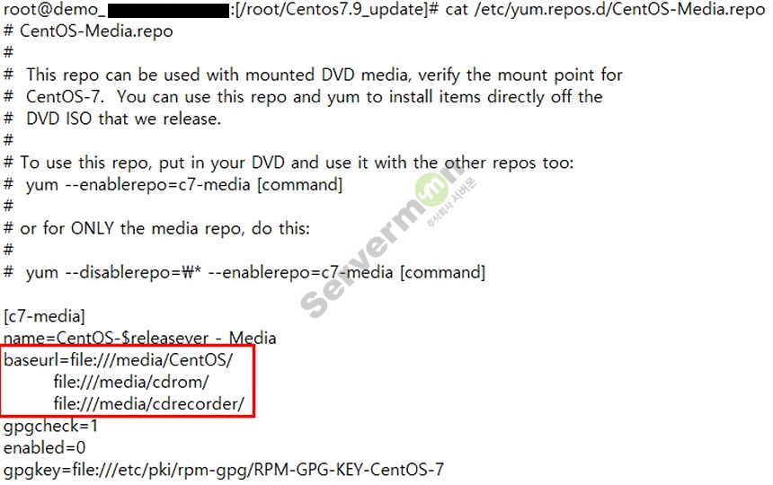 그리고 CentOS-Media.repo 파일을 열어 baseurl 경로를 확인 합니다.