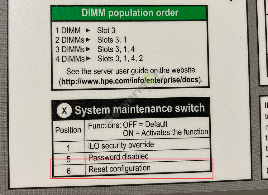 하단의 표를 확인하여 Reset Configuration의 스위치 번호가 6번임을 확인합니다.