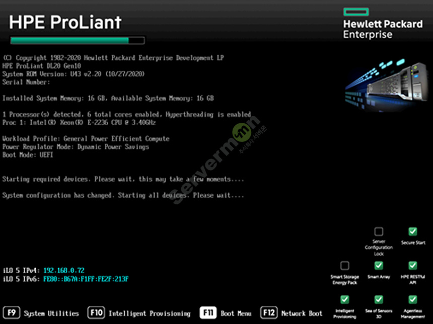 서버 부팅중 F11 키를 눌러 부팅 메뉴로 진입 합니다.