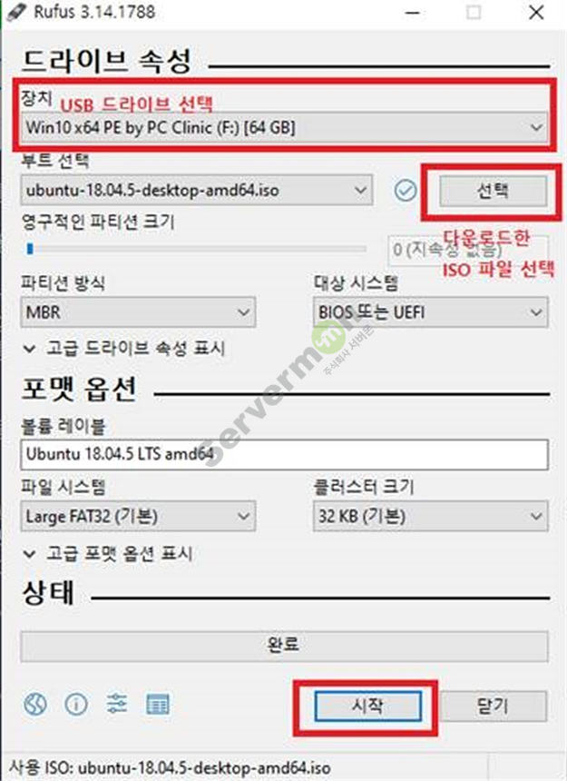 Rufus 유틸을 사용하여 부팅 가능한 USB 장치를 생성 합니다.