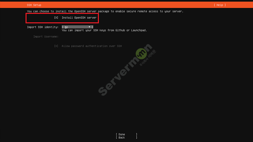 원격 접속을 위해 SSH 서버를 설치 합니다.