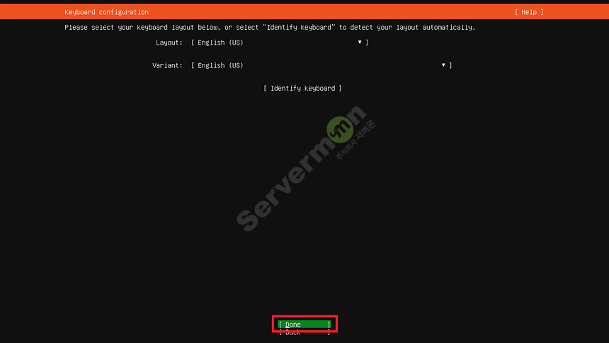 키보드 레이아웃 선택 입니다. Enlgish (US) 기본 값을 선택 합니다.