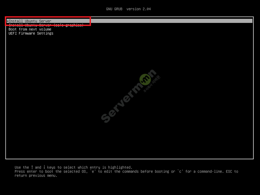 Install Ubuntu Server를 선택하여 설치 모드로 진입 합니다.
